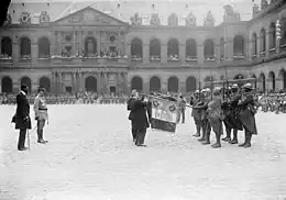 - la Croix de guerre 1914-1918 avec quatre palmes et de la Fourragère aux couleurs du ruban de la Médaille militaire en 1919[9]