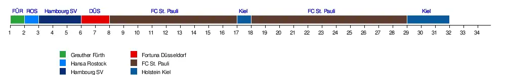| Kiel | 6 | 2 | 5 | 3 | 2 | 3 | 7 | 4 | 4 | 3 | 4 | 5 | 3 | 3 | 2 | 2 | 1 | 2 | 3 | 3 | 2 | 2 | 2 | 2 | 2 | 2 | 2 | 2 | 1 | 1 | 2 | |||