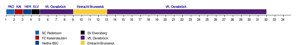 | Osnabrück | 12 | 13 | 17 | 17 | 18 | 18 | 18 | 18 | 17 | 17 | 17 | 17 | 18 | 18 | 18 | 18 | 18 | 18 | 18 | 18 | 18 | 18 | 18 | 18 | 18 | 18 | 18 | 18 | 18 | 18 | 18 | |||