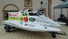 Coque catamaran, moteurs à injection, puissance : 270 ch, vitesse max. : 200 km/h, poids : 470 kg, longueur : 4,80 m.