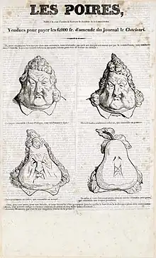 Les Poires de Honoré Daumier caricaturant le nouveau roi des Français Louis-Philippe Ier en 1831.