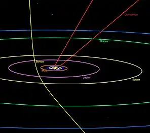 - 1I/ʻOumuamua, découvert en 2017 et le seul objet interstellaire connu auparavant, avec une excentricité de 1,19951