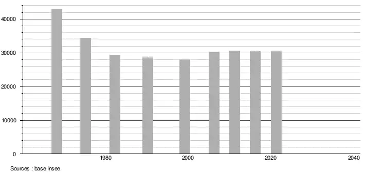 - Population municipale légale en vigueur au 1er janvier 2024, millésimée 2021, définie dans les limites territoriales en vigueur au 1er janvier 2023, date de référence statistique : 1er janvier 2021.