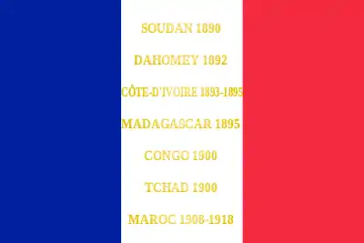 Soudan 1890 Dahomey 1892 Côte d'Ivoire 1893-1895 Madagascar 1895 Congo 1900 Tchad 1900 Maroc 1908-1918 |