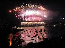 - tirs de feux d'artifice dans de nombreux pays à travers le monde comme l'Australie (photographie), l'Italie et leurs diasporas, etc., surtout à partir du à minuit heures locales, la ligne de changement de date "fusant (donc progressivement) foi" d'est en ouest ;