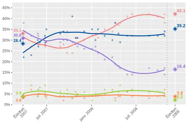 | Évolution des intentions de vote pendant la 38e législature du Québec | |