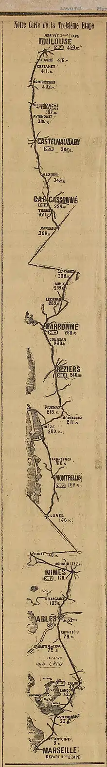 Parcours de la 3e étape : Marseille-Toulouse[1],[2]