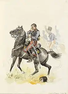 "Les uhlans apparaissent à la sortie du village, ils poussent des hurlements et agitent leurs lances. Ils sont à 300 mètres et se forment en bataille face à nous. Je sens mes hussards en ligne sur un rang derrière moi, bien en main, bien vibrants, j'évoque mon examen de sortie de Saint-Cyr à Satory et je crie : "Pour l'attaque… charger !"
