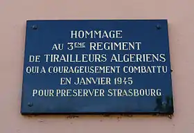 « Hommage au 3e Régiment de Tirailleurs Algériens qui a courageusement combattu en pour préserver Strasbourg. »