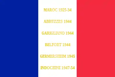 Maroc 1925-1934 Abruzzes 1944 Garigliano 1944 Belfort 1944 Germersheim 1945 Indochine 1947-1954 |
