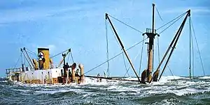 - Dès 1928 : dégagement des navires de pêche, pourvus en radiotéléphonie dans la bande 105 mètres, à 185 mètres soit de 1,62 MHz à 2,85 MHz[13]. Puis en 1932 création de la fréquence internationale de détresse en radiotéléphonie sur 1 650 kHz[22] déplacée en 1949 pour la fréquence 2 182 kHz[23].