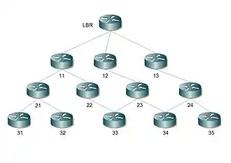 Le LBR (de l'anglais Low power and lossy network Border Router, « routeur de bordure du réseau, de faible puissance et avec perte ») désigne l'équipement en bordure de réseau. Le LBR, de rang 1, est à la source du graphe orienté acyclique qui est construit par le protocole RPL précédemment cité. Le LBR et tous les équipements de rang supérieur forment une DODAG (de l'anglais Destination-Oriented Directed Acyclic Graph, « graphe acyclique orienté vers la destination »). Le LBR envoie un message d’information DIO (de l'anglais DODAG Information Object, « Objet d'information DODAG ») en multicast. Lorsqu’un équipement reçoit une nouvelle version de DIO, il calcule notamment son rang (par rapport à celui qu’il vient de recevoir) et propage son DIO. Vu d’un équipement, tous les équipements possédant un rang inférieur peuvent prétendre être parents. Les routes optimales (« parents ») au sein du DAG sont obtenues à partir de métriques et de contraintes[48].