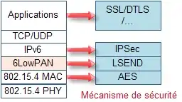 - afin de contrôler l’intégrité des données transmises sur un réseau 6LoWPAN, la sécurisation du transfert des données devrait être implémentée au niveau IP, en plus de celle offerte par IEEE 802.15.4 (via AES).