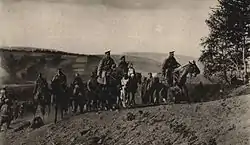 Officiers de la 12e division (8e armée) autour d'une borne-frontière en Galicie, v. 1914-1915