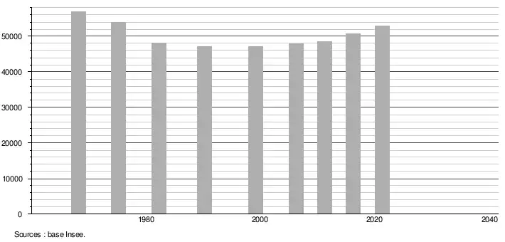 - Population municipale légale en vigueur au 1er janvier 2024, millésimée 2021, définie dans les limites territoriales en vigueur au 1er janvier 2023, date de référence statistique : 1er janvier 2021.