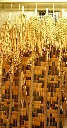 Les habitations des Aïnous ont toujours trois fenêtres (on peut d'ailleurs le constater sur l'image de droite). Deux d'entre elles sont toujours dans la même direction. Il n'y a jamais de fenêtre au nord[29],[30].