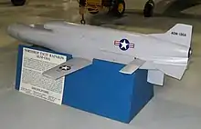 Un AGM-136A Tacit Rainbow dans sa livrée d'engin de test, dans la galerie « cold war » du musée national de l'Air Force, dans l'Ohio. | |
