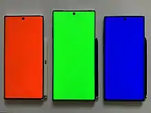 | Full HD Super AMOLED | 1920×1080 | 5.7 | 388 | RGBG Pentile | Samsung Galaxy Note 3 |