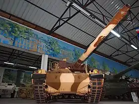 | Blindage | caissons composites montés sur l'arc frontal, abritant plusieurs des couches d'acier superposées |