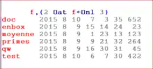 )box onpermet en NARS2000 d'effectuer un⎕fmtautomatique chaque fois que nécessaire, ce qui facilite l'apprentissage d'APL (Les boîtes s'affichent correctement avec la police SimPL, utilisable dans LibreOffice mais pas encore dans Wikipédia). - Parfois nommée unquote, puisqu'inverse de la fonction de mise en forme quote (⍕)