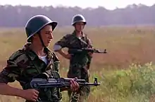 Soldats albanais armés de fusils d'assaut ASH-82 en 1996.