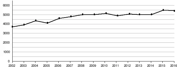 Évolution de la moyenne de spectateurs à domicile de l'ASVEL depuis 2002