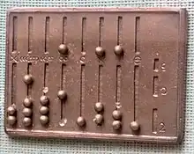 Abaque (du latin abacus, lui-même du grec ancien ἄβαξ / ábax, signifiant « table à poussière »[1], de l'hébreu אבק, avaq signifiant « poussière ») est le nom donné à tout instrument mécanique plan facilitant le calcul.
