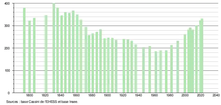 - Fiches Insee - Populations légales de la commune pour les années 2006, 2007, 2008, 2009, 2010, 2011, 2012, 2013, 2014, 2015, 2016, 2017, 2018, 2019, 2020 et 2021.
