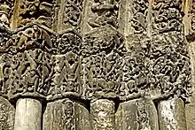 Le portail est flanqué de deux arcades où dominent le thème de la rédemption et du jugement dernier. L'arcade de droite représente ainsi la Cène, tandis que celle de gauche montre notamment le Christ accueillant les âmes. Contrairement à l'habitude, celles-ci sont exclusivement présentées sous des traits féminins, ce qui s'explique par la nature même de cette abbaye.