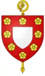 - 1785, écu à l'orle d'étoiles portant en abyme un écusson chargé de rinceaux, timbré d'une couronne de comte, entre une mitre et une crosse dans un cartouche accompagné de deux rameaux fleuris[14].