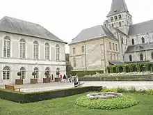 Les visiteurs, hôtes, convers et domestiques ont un accès direct aux sept premières travées de l'église et à une cour commune qui donne accès au logis de l'abbé avec son écurie et sa remise, à l'hôtellerie et à l'infirmerie. La grange aux dîmes et l'écurie du monastère sont dans une autre petite cour[15].