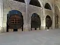 Près de l'aile sud du cloître, le lavabo se trouve devant le réfectoire (afin que les moines se purifient les mains avant de toucher le pain, symbole sacré). Une clôture octogonale avec une série de trois arcs de chaque côté, reposant sur des colonnettes jumelées, enserre une fontaine. Un répertoire varié (trilobes, quatre feuilles, anneaux), aux remplages monoblocs, complète cet ensemble. Celui-ci est couvert de huit nervures de pierre se réunissant au centre par une clé pendante. La végétation, apportant de l'ombre au lieu en plein été, est supportée par une treille. Alimentée par la source de Diane[17], la fontaine déverse son eau pure de la vasque supérieure vers un bassin octogonal par quatre têtes de griffons.