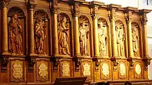 Les bas-reliefs qui ornent les fronts des stalles, sont exclusivement consacrés à l'histoire de l'ordre de Saint Benoît.