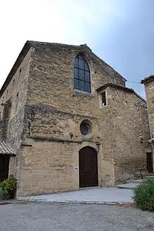 Le long du côté nord de la place se trouve l’ancienne église abbatiale. Cette abbatiale est orientée est-ouest, avec un léger désaxement nord-est, et se distingue par ses dimensions modestes, avec environ 13 m de long. Elle a conservé son plan en croix latine.Elle possède une nef à vaisseau unique avec un transept débordant. La nef est voûtée en berceau longitudinal, tandis que le transept comporte des berceaux transversaux un peu plus bas. Les deux bras du transept sont pourvus de deux petites absidioles orientées inscrites dans un mur plat à l’extérieur. Au nord, l’hémicycle est muré par l’installation de la sacristie appuyée contre le chevet et le bras nord du transept. Une pierre tombale rappelle l’emplacement du tombeau du bienheureux Bertrand de Garrigue dans le bras nord du transept.