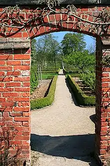 Sur le côté de la maison se trouve un grand quadrilatère de bâtiments formant l'ancienne cour de l'écurie et la ferme, avec de vieux chariots et des outils agricoles. Les dépendances intègrent une salle de brassage qui est reliée à la maison principale par un tunnel.