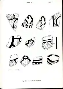 Fragments de vitraux trouvés lors de la compagne de fouilles d'août 1989.