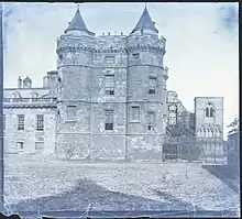 Au XVe siècle, une maison d'hôtes occupait le site, à l’emplacement actuel de la partie nord du palais. De nombreux rois d’Écosse ont séjourné ici, avant la construction du palais ; à la fin du XVe siècle Holyrood n’était une résidence royale que de nom. Jacques II y est né en 1430, y a été couronné, s’y est marié et y est enterré. Entre 1498 et 1501, Jacques IV fit construire un nouveau bâtiment et Holyrood devint un palais au vrai sens du terme.