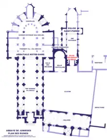 - Georges Lanfry: L'abbaye de Jumièges, Plans et documents, page:21.
