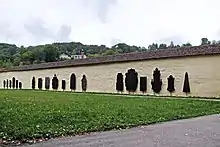 Des bâtiments médiévaux, seulement le mur occidental est conservé. Dans le corps de garde se trouve un musée. Sont conservés aussi la maison du prélat de 1757 et un autre bâtiment administratif (Oberamtei) érigé vers 1700 avec la salle des princes.