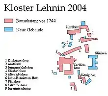 L’abbaye subit une première phase de reconstruction au XIXe siècle, suivie surtout depuis la Réunification par la restauration et l'assainissement de plusieurs bâtiments historiques, qui ne prirent fin qu'en 2004. De nouveaux travaux d'assainissement ont été menés depuis, avec des financements non négligeables du Land de Brandebourg, et aussi, comme ce fut le cas en 2004 pour l'ancien péage d'octroi (Amtshaus), avec un financement du Brandenburgisches Amt für Denkmalpflege.