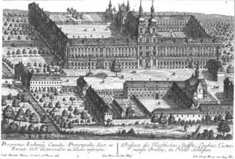 L'abbaye est entièrement reconstruite après la guerre, entre 1681 et 1739, durant les abbatiats d'Arnold Freiberger, Johann Reich, Dominik Krausenberger, Baltazar Nietzsche, Ludwig Bauch et Konstant Beyer[3]. L'église abbatiale est décorée (entre 1672 et 1681) dans un style baroque, auquel travaillent notamment les peintres Michael Willmann et Felix Anton Scheffler et les sculpteurs Matthias Steinl (de) et Franz Joseph Mangoldt[4],[6].