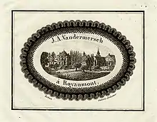 Sur le plan des biens immobiliers, Royaumont possédait, entre autres, des hôtels à Paris (depuis 1295)[a 7] et à Montataire, qui ne généraient pas toujours de revenus tant qu'ils furent utilisés pour les besoins propres de l'abbaye. Un autre hôtel seigneurial que l'abbaye possédait à Asnières et connu comme le petit Royaumont était par contre généralement loué, et ceci au moins temporairement avec toute la seigneurie ; par exemple au bourgeois parisien Salomon Prevost à partir du pour un loyer annuel de seize mille livres et pour une durée de neuf années[b 47]. - L'hôtel parisien connu comme l'hôtel de Royaumont acquis en 1316 a été vendu par l'abbé de Ballivières en 1785 contre trois mille cinq cents livres parisis annuelles de rente qui devaient être investis dans le nouveau palais abbatial. Un an plus tard, le petit hôtel de Royaumont dans la même rue a également été vendu, dans le même but ; cette vente a rapporté la somme de soixante-dix-huit mille livres[b 48].