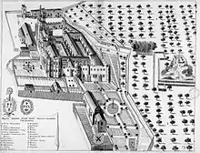 L’abbaye au XVe siècle, détail de la planche Clermont de l'Armorial d'Auvergne de Guillaume Revel. | |||