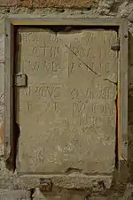 Un ex-voto est gravé sous l'autel majeur directement dans la pierre de tuffeau. Il signifie « Aux ides de juin, dédicace au Dieu sauveur. » Il est interprété soit comme une dédicace de l'église, soit comme l'ex-voto d'un pèlerin reconnaissant (cette dernière hypothèse semble affaiblie par le fait qu'il n'y a pas d'autre ex-voto)[15].