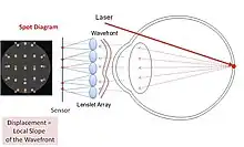 Les analyseurs de front d'onde permettent de mesurer une partie des défauts des optiques en comparant le front d'onde issu de l'optique à un front d'onde plan. C'est par exemple le cas du dispositif de Shack-Hartmann.