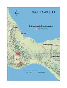 Cette espèce est endémique d'Oaxaca au Mexique[1]. Elle se rencontre entre 2 100 et 2 743 m d'altitude[2].