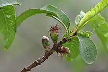 Localement, il se forme du liège de « cicatrisation » à la surface de la région endommagée par l'abscission foliaire où il se forme une cicatrice foliaire constituée de tissu subérifié[4]. Cette zone compartimentée est souvent assez intensément colorée en brun par des tannins qui sont des défenses chimiques des plantes contre les herbivores[5].