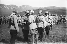 L’officier qui lui épingle la décoration et lui donne l’accolade procède à une forme d’adoubement qui fait du soldat un héros, un brave, un guerrier[6].