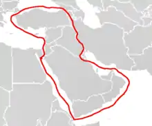 La ligne rouge incluait le territoire de l’ancien Empire ottoman au Moyen-Orient, ainsi que la totalité de la péninsule arabe. Les pays ou territoires concernés étaient en 1928 :