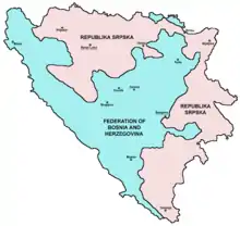 Les accords de Dayton prévoient une partition de la Bosnie-Herzégovine à peu près égale entre la fédération de Bosnie-et-Herzégovine (croato-bosniaque) et la république serbe de Bosnie (serbe), ainsi que le déploiement d'une force de paix multinationale, l'IFOR : un système de gouvernance tripartite complexe permet de conserver l'intégrité territoriale de la Bosnie, laissant une large autonomie aux entités croato-musulmane d'une part et serbe d'autre part.